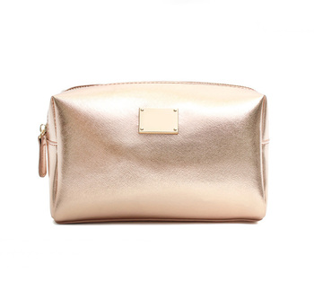 ARTGIMEN Gül Altın Metalik Saffiano Deri Kozmetik Makyaj Tuvalet Organizatör Çantası Seyahat ve Depolama